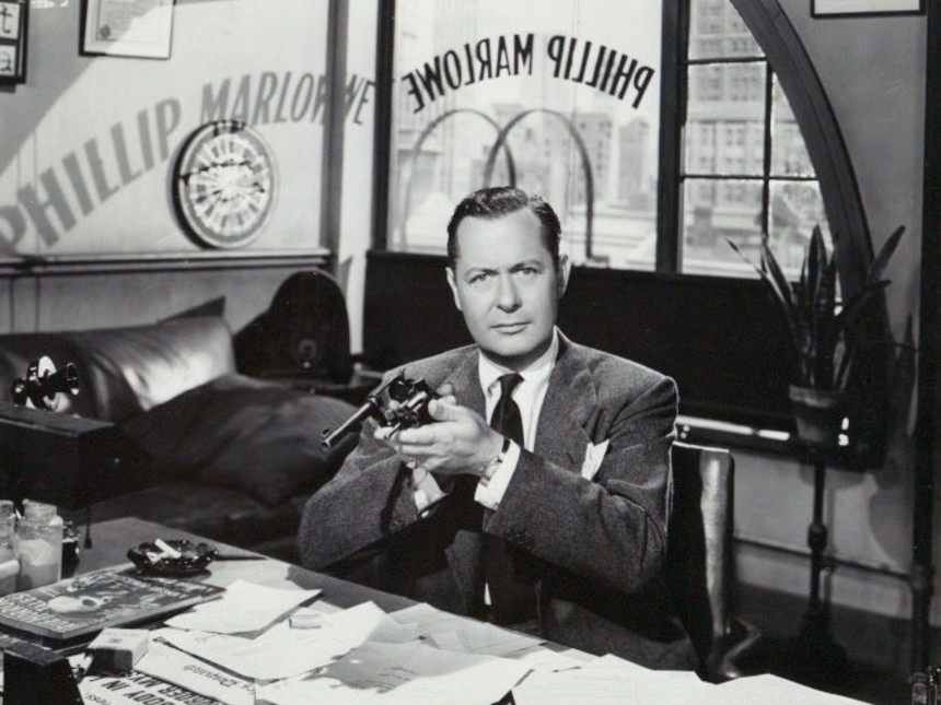 O filme começa na melhor tradição do cinema noir. O detetive Philip Marlowe (Robert Montgomery) está limpando sua arma, se volta para a câmera e conversa com o espectador. Marlowe é o célebre detetive criado pelo escritor Raymond Chandler. “Um homem sensível e inteligente como Philip Marlowe nunca seria um detetive na vida real”, diria o escritor. A câmera continua fixa em Marlowe, enquanto ele explica ao espectador questões de sua profissão, como ganhar 10 dólares por dia para encontrar uma mulher. Ele passa a contar sobre as manchetes de jornal daquele dia que relatam a busca do assassino conhecido como “O caso da dama do lago.” Marlow diz que a verdade não é a que está nos jornais e relata suas investigações, começadas três dias antes.