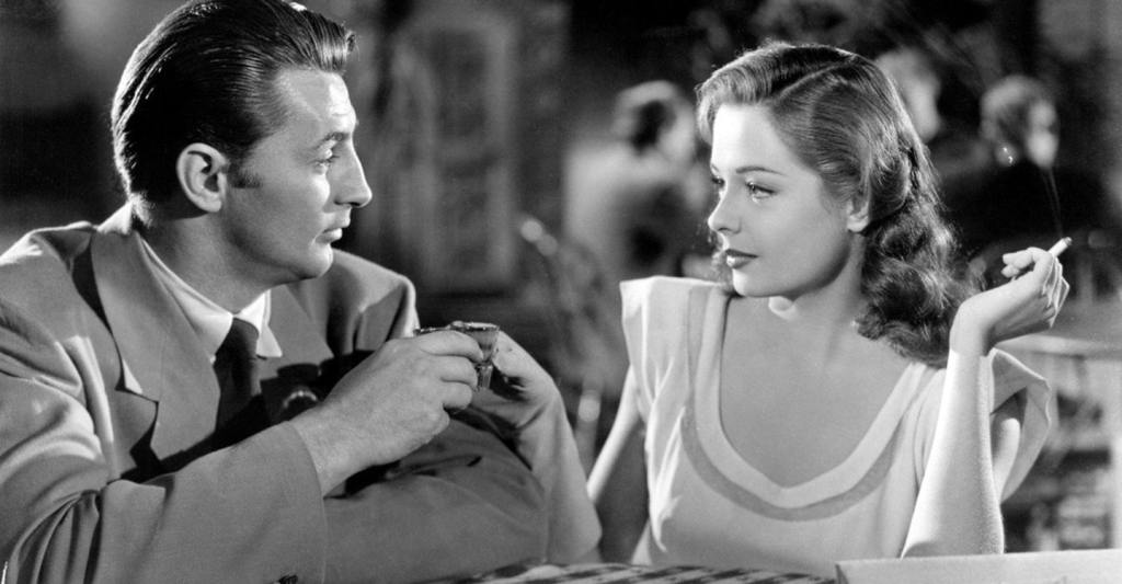 Fuga do passado (Out of the past, EUA, 1947), de Jacques Tourneur. A interpretação naturalista de Robert Mitchum como o detetive Jeff Markham é um trunfo do filme. Jeff Markham é o retrato deste estilo de ator que consagrou o clássico cinema noir americano. Frio, cínico, o chapéu levemente de lado, cigarro nos lábios e olhar penetrante na mulher (em sentido figurado e literal). Mas é Jane Greer a grande estrela de Fuga do passado. Sua personagem Kathy Moffat seduz todos ao seu redor com a gélida beleza da mulher fatal – sequer pisca os olhos quando dispara seu revólver para alcançar seus objetivos, seja no gângster/amante interpretado por Kirk Douglas, seja no parceiro corrupto de Jeff, seja no próprio Jeff, a quem diz amar.