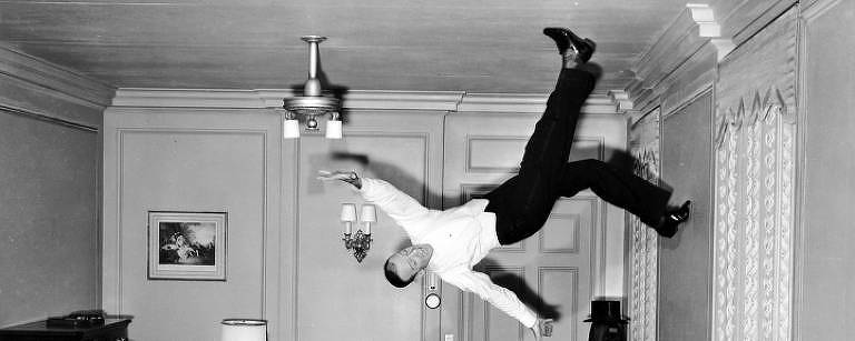 “Ficam canceladas também as leis físicas: nos seus filmes, dança-se no teto e nas paredes, como em Núpcias reais (1951). Dança-se de patins num Central Park magicamente livre de perigos, como em Vamos dançar (1937). Dança-se com a própria sombra (não uma, mas três, enormes, refletidas em silhuetas no fundo do palco), como em Ritmo louco – em que Astaire as derrota em velocidade, porque elas não conseguem acompanhá-lo. E dança-se em câmara lenta, como em Desfile de Páscoa, numa inacreditável radiografia não de um corpo em movimento, mas do movimento desse corpo. Ou dança-se tendo como coadjuvante nove fredastaires em miniatura, como em Romance inacabado (1946) – mas ninguém pode reclamar de um excesso de Astaires. Dança-se com cabides, manequins de vitrine, aparelhos de ginástica e com o que mais houver à mão. E, para que Astaire faça de seu palco uma praia noturna, são suficientes, como em Ver, gostar e amar (1952), uma lua de spotlight e a areia tirada de um chapéu.”