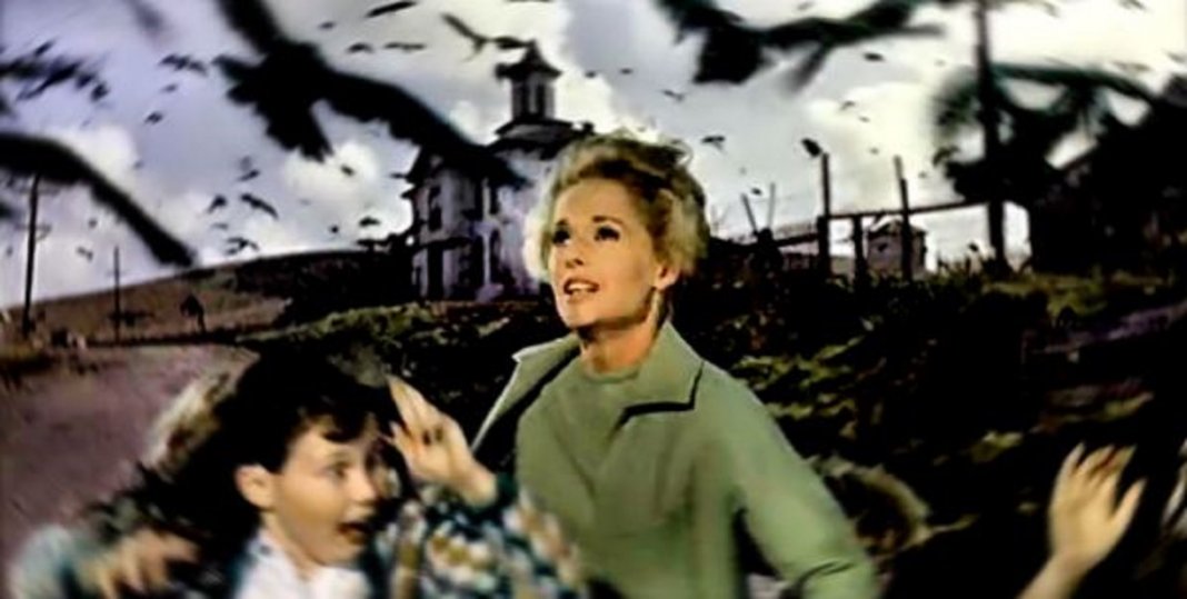 Os pássaros (The birds, EUA, 1963), de Alfred Hitchcock. Com Rod Taylor, Tippi Hedren, Suzanne Pleshette, Jessica Tandy.